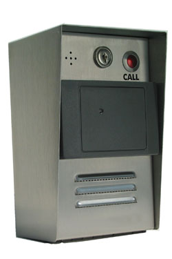With the proximity reader mounted to the face, authorized people are allowed access while visitors are able to gain entry by pressing the button and speaking to the auto attendant whom in turn grants or denies access.